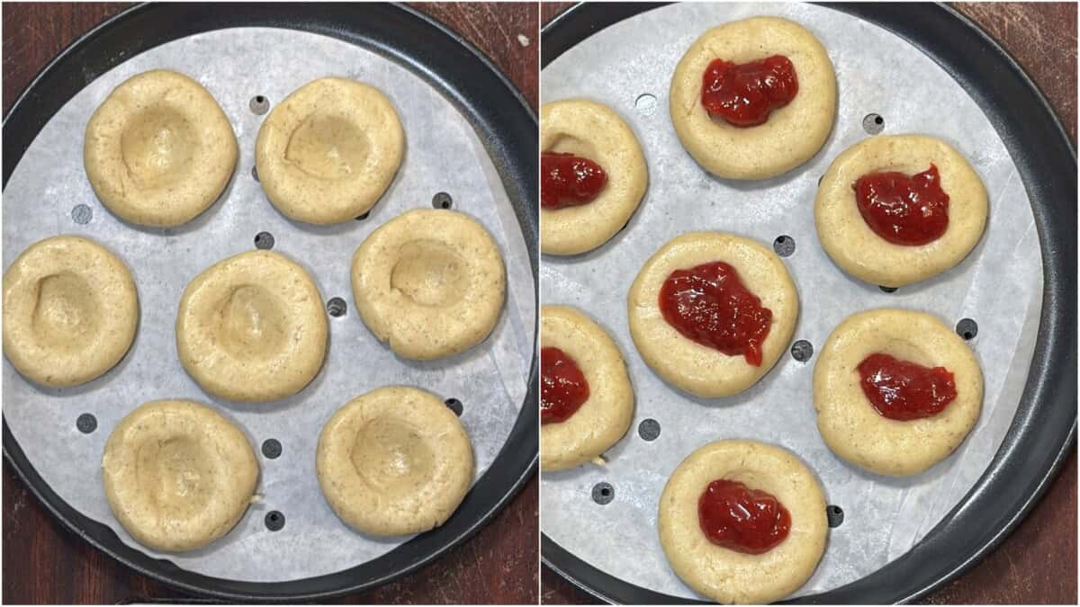 - Add a small amount of jam into each indentation.