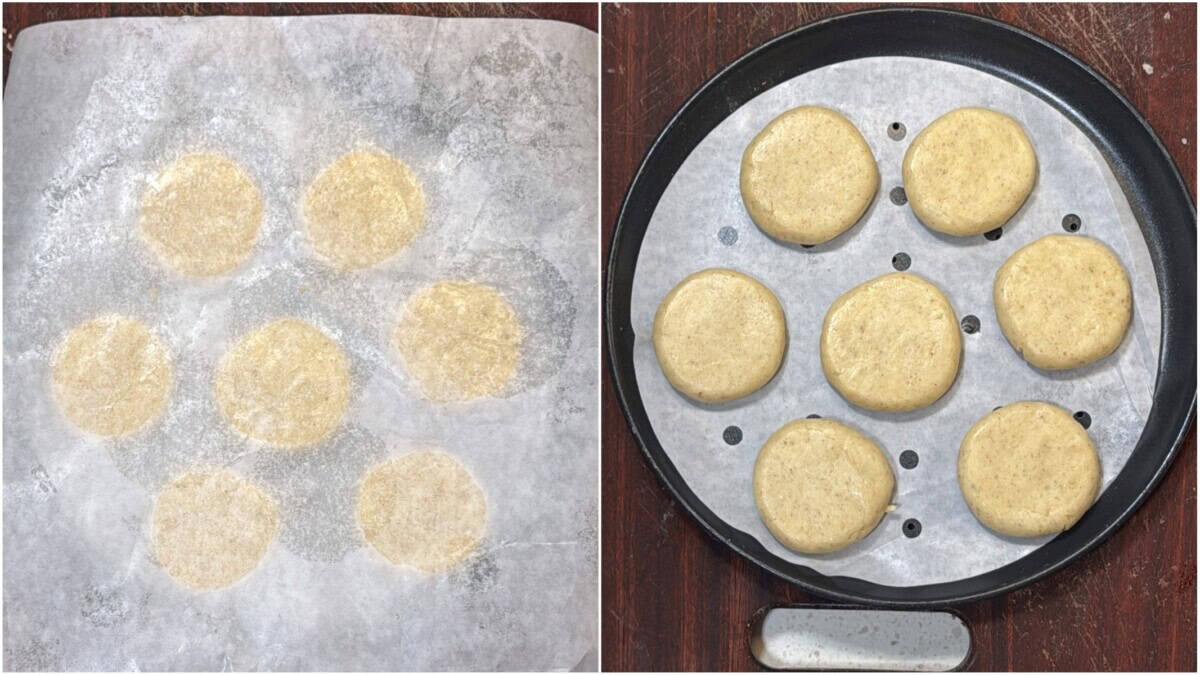 5. Roll the dough into small balls, flatten them slightly and place them on parchment paper.