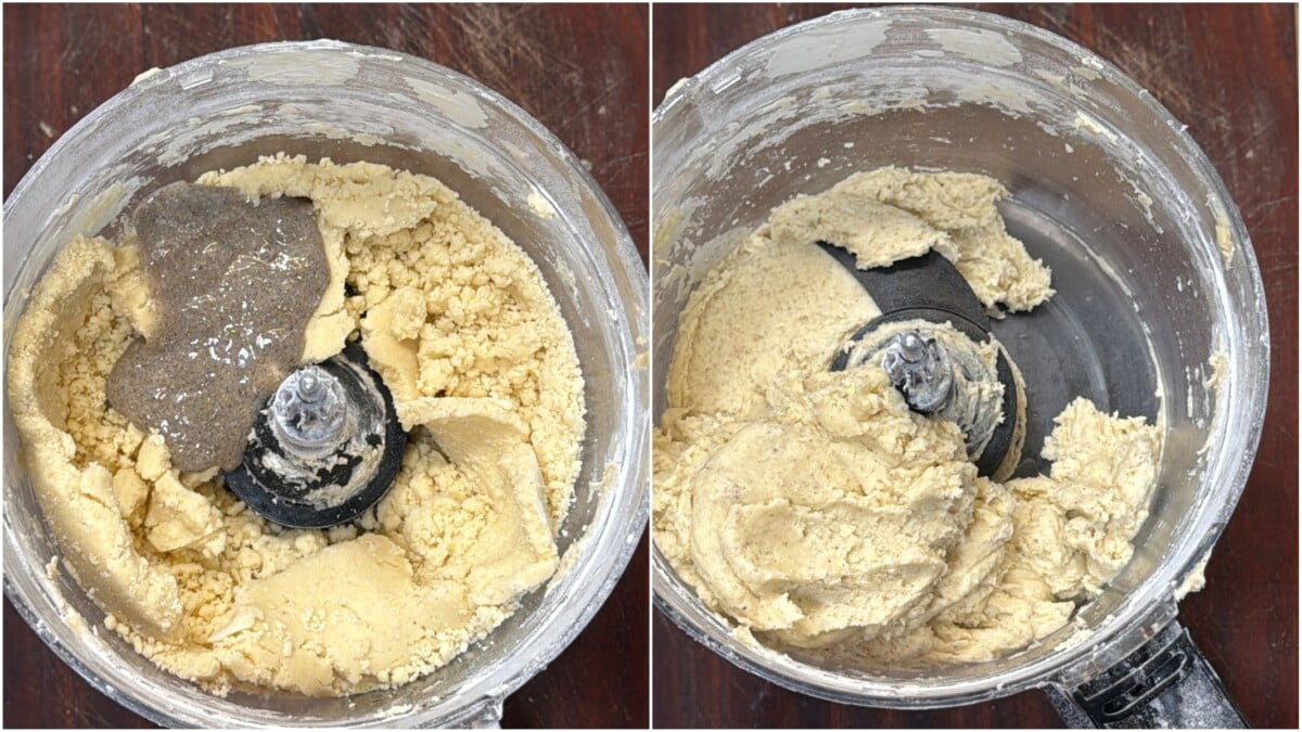 - Add the prepared chia gel and blend until a smooth dough forms.
