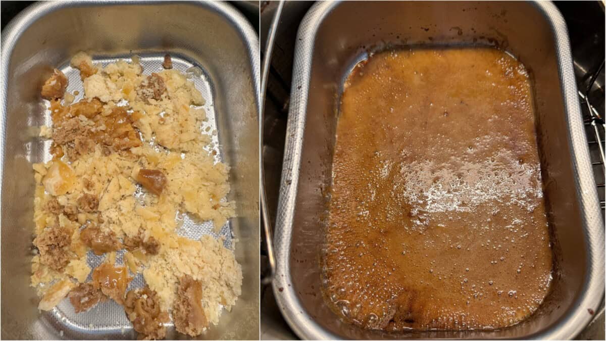 - Melt jaggery: In another heatproof dish, add jaggery and coconut oil. Air fry at 170°C (340°F) for 9-10 minutes, stirring once midway.