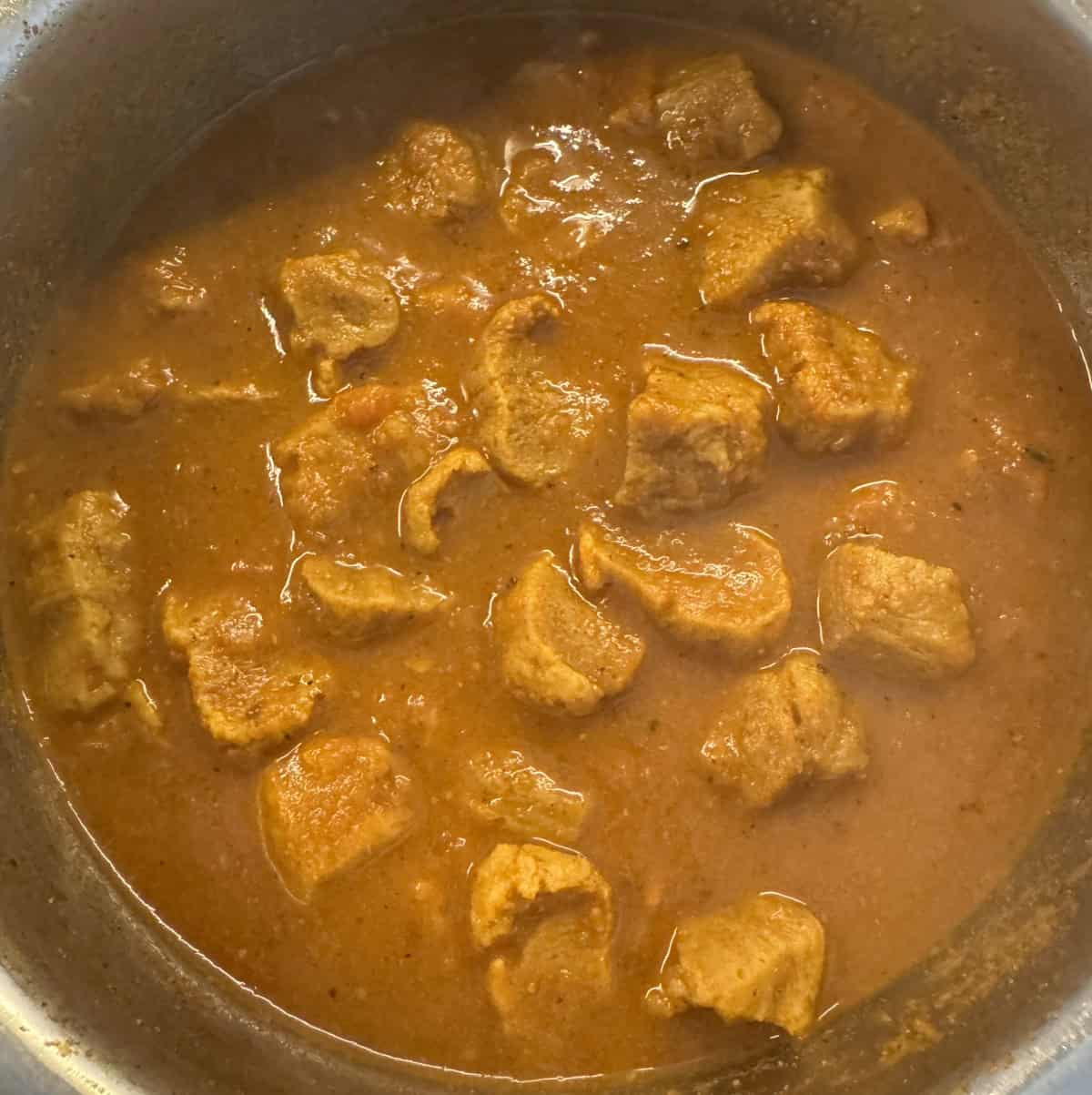 - Once the pressure has naturally released, open the cooker and give the soya chunks a final stir.